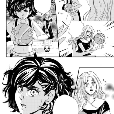 Ho illustrato la storia Fly with me, scritta da Valerie Notari, un racconto slice of life a tematica girl love, ambientato nel mondo del basket.