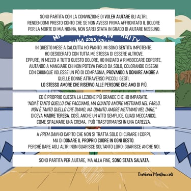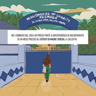 Nel 2024 ho trascorso un mese a Kolkata, svolgendo attività di volontariato presso gli Istituti di Madre Teresa. Per Agenzia di Stampa Giovanile ho scritto e disegnato un reportage a fumetti riguardo questa esperienza.